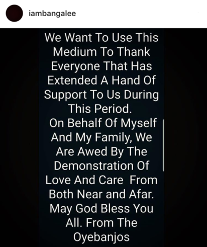 DB Records Boss, DBanj, this morning took to his Instagram page to thank everyone who has extended their hands of supports towards his family, since the death of his 1 year old son, Daniel ‘D third. According to his Instagram post he wrote: “We want to use this medium to thank everyone that has extended a hand of support to us during this period. On behalf of myself and my family, we are awed by the demondstration of love and care from both near and afar. May God Bless you all. From the Oyebanjos.” Recall that this is the first time Dbanj will be speaking after the loss of his child. Daniel Oyebanjo III died after drowning at a pool in Dbanj’s Ikoyi residence on Sunday afternoon. His remains have been moved to a morgue at GRA, Ikeja.